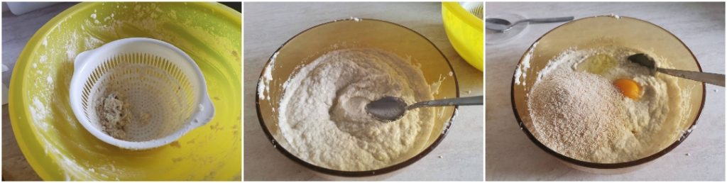 • Wir gießen die Masse in eine Schüssel, sieben sie, geben Salz und Pfeffer hinzu, fügen das Ei und das Paniermehl hinzu. Wir mischen alles gut mit einem Löffel, gegebenenfalls kann noch mehr Paniermehl hinzugefügt werden, wenn die Masse zu weich ist.