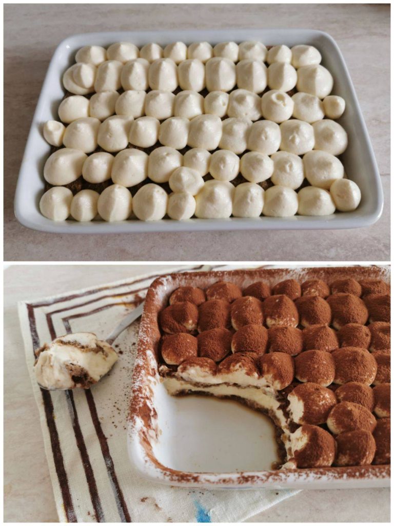 KLASSISCHES TIRAMISU‘, das beliebteste und bekannteste Dessert der italienischen Küche weltweit. Es wird ohne Kochen zubereitet, mit in Kaffee getränkten Löffelbiskuits, die in Schichten mit einer Mascarponecreme abwechseln, schließlich mit Kakaopulver bestreut und im Kühlschrank ruhen gelassen werden, bevor es kalt serviert wird. Eine seltene Köstlichkeit mit unklaren und umstrittenen Ursprüngen, zwischen dem Piemont, Friaul, der Toskana und Venetien. Im Folgenden werde ich Ihnen alle Geheimnisse verraten, um eine Creme mit fester Konsistenz, nicht flüssig und mit delikatem Geschmack zu erhalten. In jedem Fall gibt es von diesem traditionellen Rezept viele verschiedene Versionen mit zahlreichen Variationen, das Rezept, das ich Ihnen heute hinterlasse, ist das Tiramisù, das meine Familie zubereitete, soweit ich mich erinnern kann. Die Zubereitung ist einfach, aber es müssen einige unerlässliche Tricks angewendet werden, um ein perfektes Dessert zu erhalten: Alle Produkte müssen von bester Qualität und aus dem Kühlschrank kalt sein. Hier unten wurde, wie Sie auf dem Foto sehen, eine einzige Form zubereitet, aber Sie können auch problemlos kleine Portionen in Casserolen, Gläsern, Schälchen zubereiten. Das Tiramisù ist das perfekte Dessert als Nachtisch für jede Jahreszeit und verschiedene Anlässe…..Weihnachten, Sonntage in der Familie, besondere Gelegenheiten….praktisch immer…..