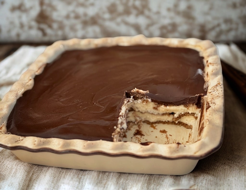 Es ist ein Dessert, das nach Kindheit, Geborgenheit und Glück riecht, perfekt für einen besonderen Anlass, ein Abendessen mit Freunden oder einfach nur, um sich einen Moment reiner Freude zu gönnen. Der Schoko-Kekskuchen mit dunkler Schokolade ist der Beweis dafür, dass wahre Köstlichkeit keine komplizierten Zutaten braucht.