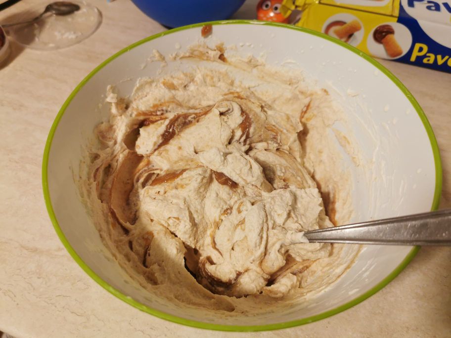 Die Marronencreme nach und nach hinzufügen, von oben nach unten mischen