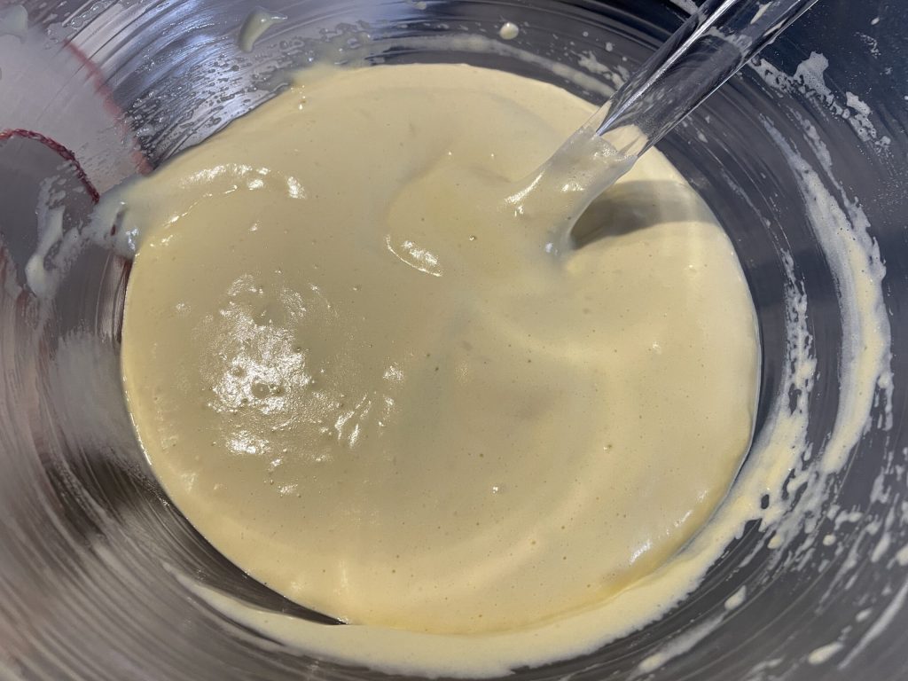 So bleibt die Torte stabil, gut ausbalanciert und ideal zum Eindecken mit den „Blümchen“ aus Pan di Spagna.Warum sinkt der Pan di Spagna nach dem Backen ein?