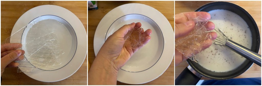 Legen Sie die Gelatineblätter in kaltes Wasser ein.