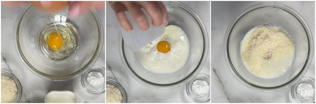 Fügen Sie die Milch und den geriebenen Parmigiano Reggiano hinzu und mischen Sie mit einem Schneebesen.