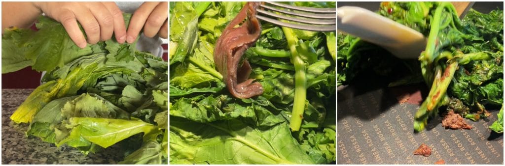 Fügen Sie dann die Sardellen hinzu und kochen Sie weiter, bis der Rübstiel weich ist.