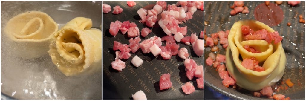 Die Füllung kann je nach Geschmack variieren. Ich habe mich für Rübstiel entschieden, um sie mit mildem Speck zu kombinieren, aber Sie können auch eine einfache Ricotta-Spinat-Füllung wählen oder im Herbst eine Kürbisfüllung, die vielleicht mit gehackten Amarettini begleitet wird!