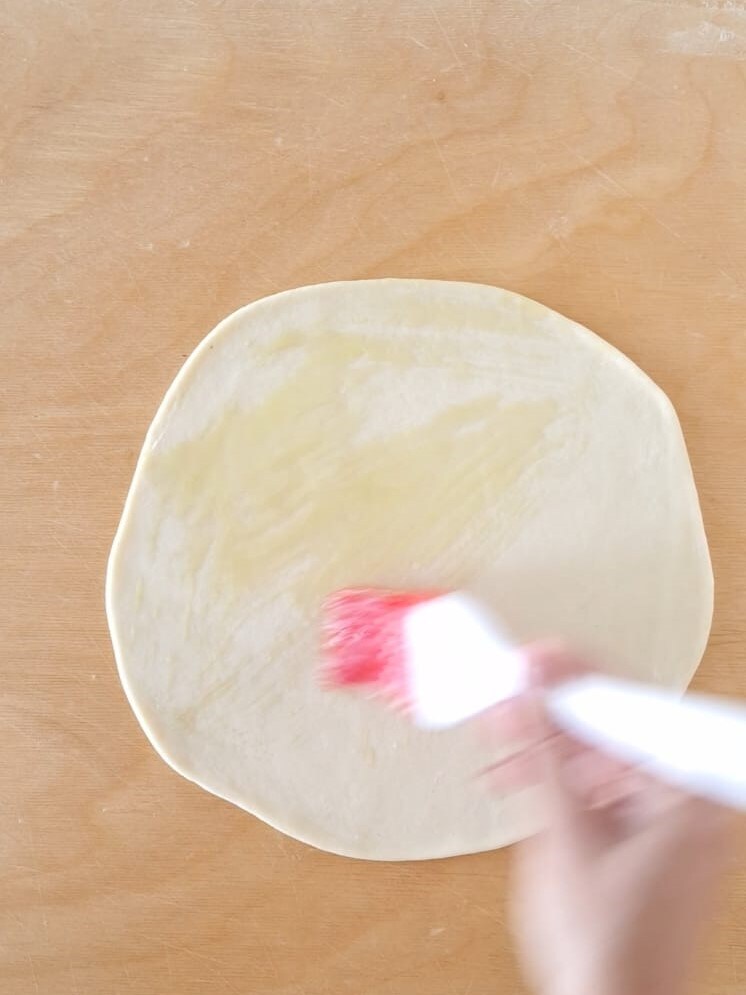 • Die Ränder gut verschließen und mit Olivenöl bestreichen.