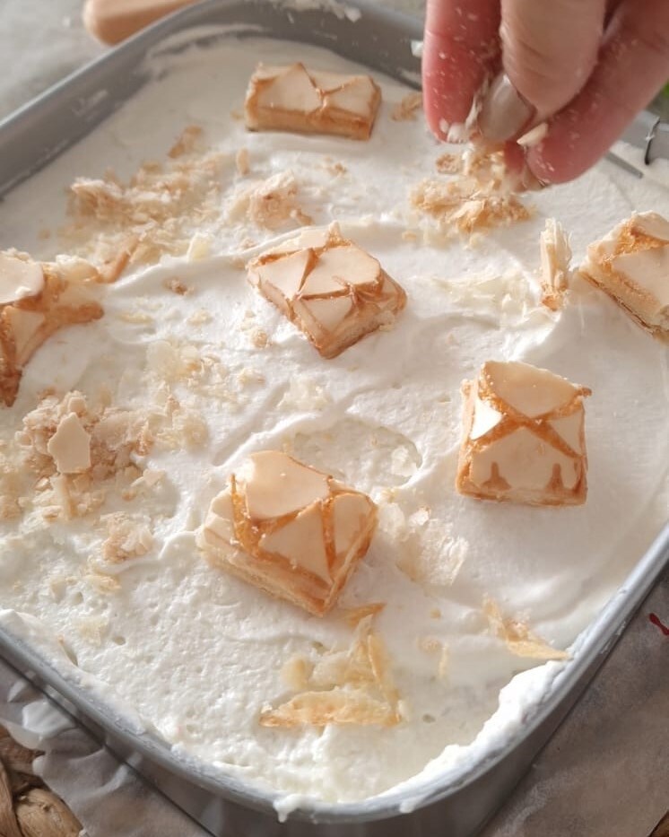 Blätterteig mit Blätterteigplätzchen ein perfektes Dessert zum Löffeln, das man zuhause zubereiten kann, wenn Gäste kommen. Ein Dessert ohne Backen, das man am Vortag zubereiten kann und es schmeckt noch besser! Ähnlich, aber anders als das klassische Halbgefrorene mit Zitronencreme, gibt es für die Naschkatzen die Version des Halbgefrorenen mit Blätterteigplätzchen und Milchcreme. Desserts sind meine Leidenschaft und um dieses Rezept heute zuzubereiten, benötigen Sie nur: Ricotta, Puderzucker, Blätterteigplätzchen und Alchermes. Probieren Sie auch den Blätterteig mit Blätterteigplätzchen und erleben Sie den Genuss! Ich freue mich auch über Ihren Besuch auf meinen Facebook und Instagram-Seiten