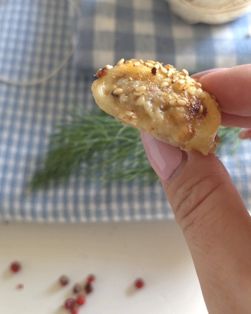 Im Ofen bei 180°C für etwa 12-15 Minuten backen. Wenn Sie sie lieber in der Heißluftfritteuse garen möchten, bei 170°C für etwa 12 Minuten garen.