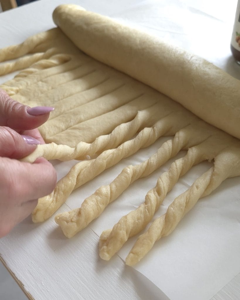 Drehen Sie sie um den mit Nutella gefüllten Zylinder.