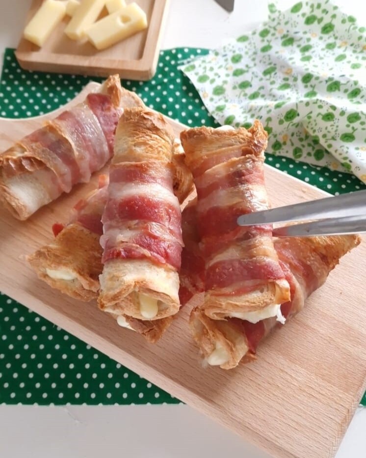Die Brotröllchen mit Speck habe ich mit Käse gefüllt, aber Sie können Ihrer Fantasie freien Lauf lassen und alle Zutaten verwenden, die Sie möchten, wie gegrillte Zucchini oder Auberginen.