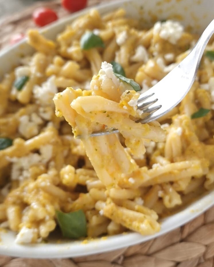 Cremige Nudeln mit Gemüse ist ein fantastisches, einfaches Sommergericht! Es handelt sich um Nudeln, die mit einer Mischung aus in der Pfanne angebratenem Gemüse mit Zwiebeln und Öl serviert werden. Alles wird püriert und mit reichlich Feta gewürzt. Wenn Sie keinen Feta mögen, können Sie ihn weglassen oder durch einen anderen Käse ersetzen. Ich schlage vor, auch die Nudeln mit Paprikasauce und die Gnocchi mit Zucchini und Lachs sowie die Nudeln mit Feta und Kirschtomaten zu probieren – 3 köstliche, saftige und saisonale Hauptgerichte.