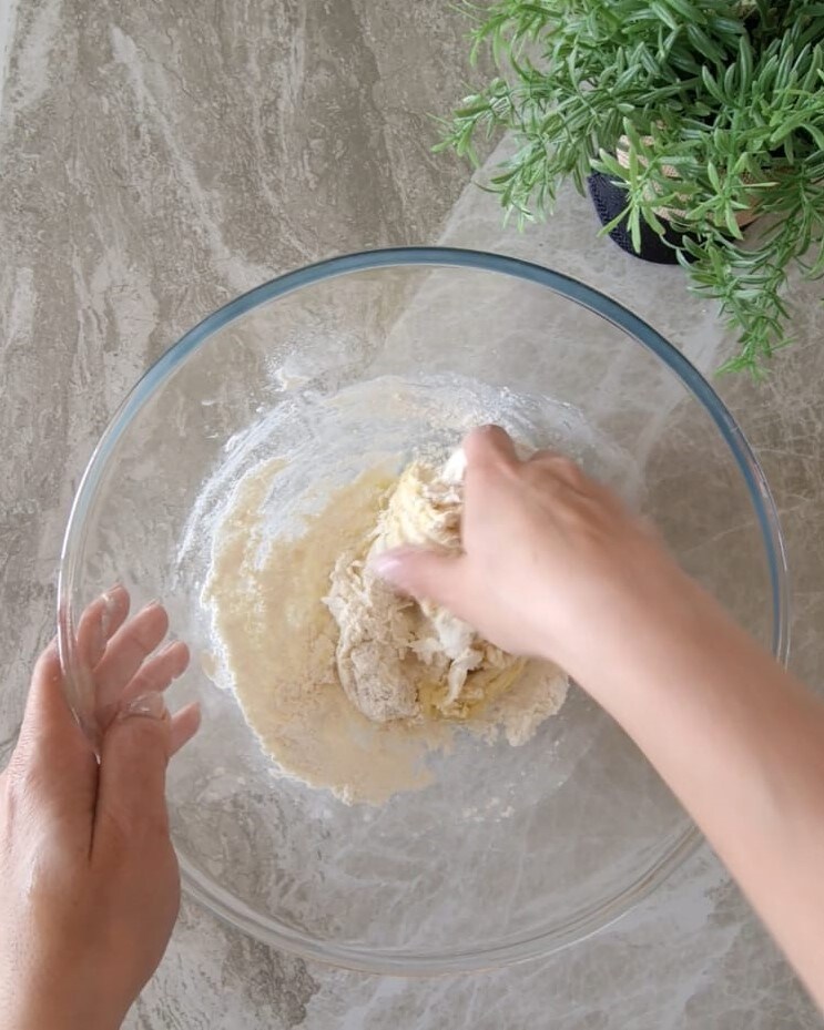 Kneten Sie alles gut durch, bis ein glatter und weicher Teig entsteht.