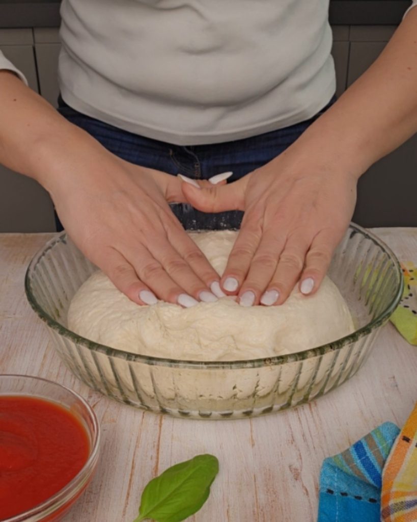 Gebt das Salz dazu und mischt weiter, bis ein sehr hydratischer Teig entsteht. Lasst den Teig abgedeckt mindestens 1 Stunde in der Schüssel ruhen.
