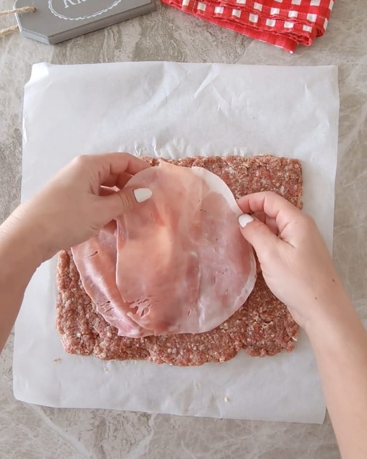Der gefüllte Hackbraten ist ein einfaches und schmackhaftes Hauptgericht, das der ganzen Familie gefallen wird. Es besteht aus einer Mischung aus Rinder- und Schweinehackfleisch, dem Eier, Paniermehl und Gewürze hinzugefügt werden. Alles wird zusammengerollt, um eine große längliche Frikadelle zu formen, die in Speck gewickelt und dann im Ofen gebacken wird. Das Rezept mit Schritt-für-Schritt-Fotos wird ganz einfach. Einen Kuss an alle von Chicca, und viel Spaß beim Nachmachen!