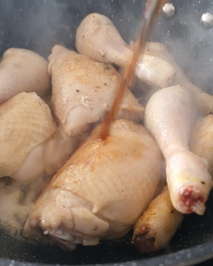 - 1 kg Hähnchen (in Stücken: Schenkel, Brust und Keulen)