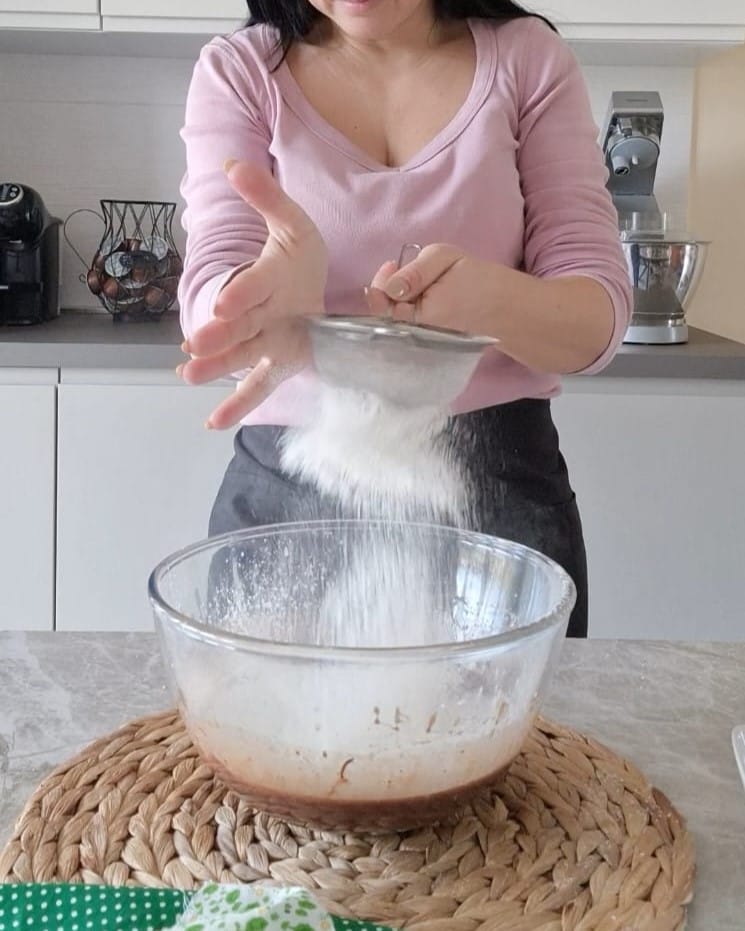 Beginnen Sie mit dem Schlagen der Eier mit dem Zucker in einer großen Schüssel mit einem Mixer, dann fügen Sie die Nutella hinzu und mischen Sie weiter mit dem elektrischen Schneebesen.