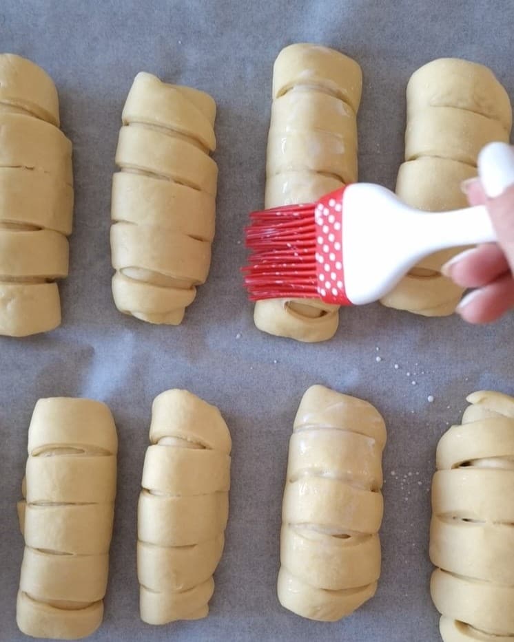 Vor dem Backen bestreicht sie mit etwas Milch
