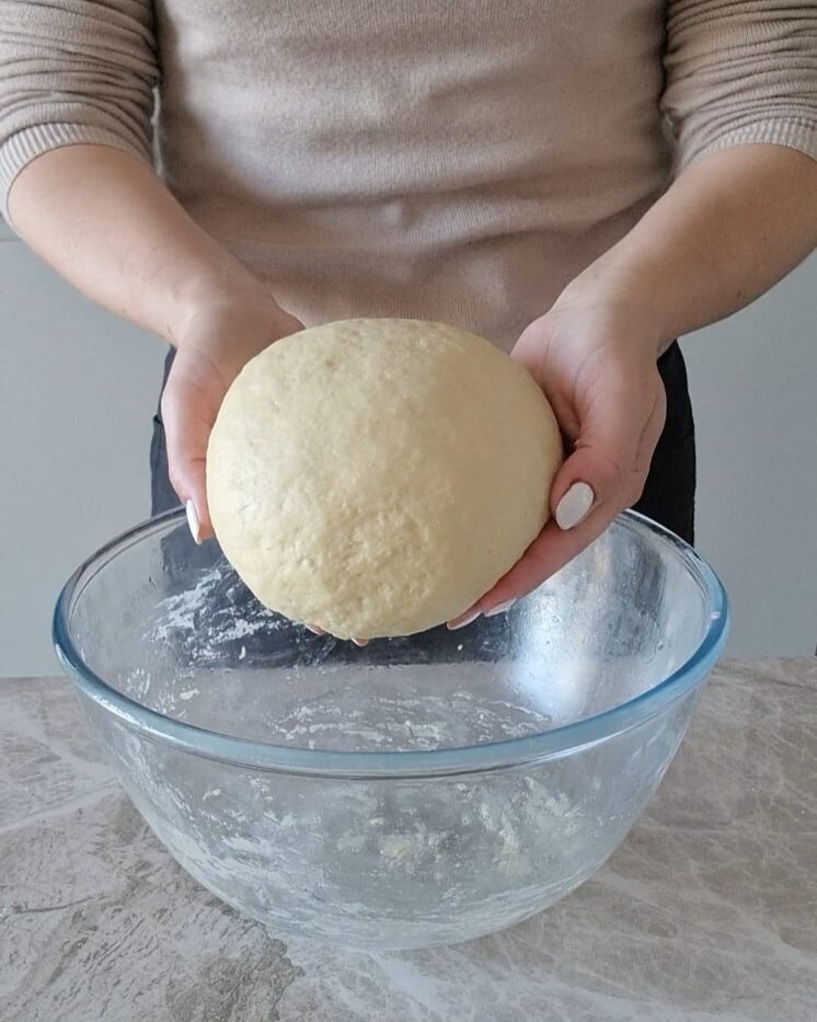 Dann knetet gut, bis ein Teig entsteht; lasst ihn 2 Stunden im ausgeschalteten Ofen mit eingeschaltetem Licht gehen.