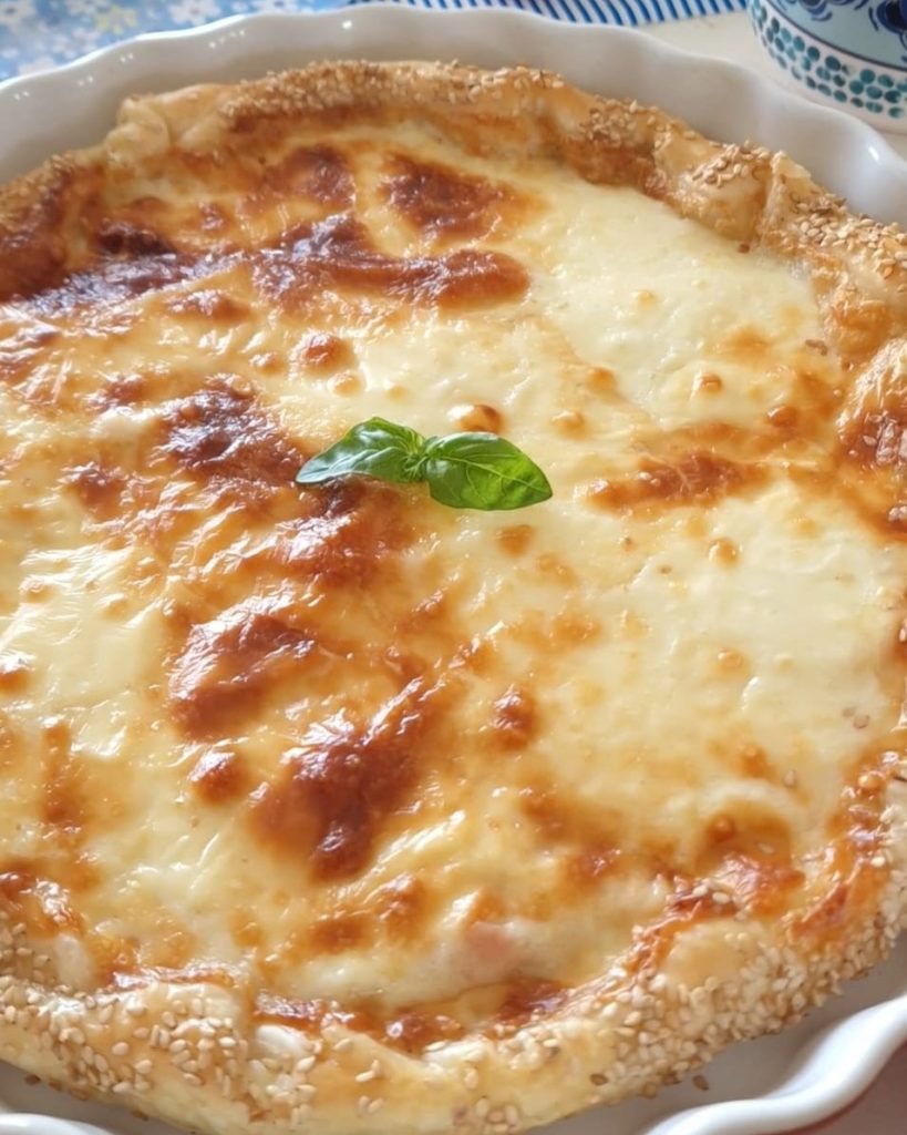 Fügen Sie auch den Stracchino hinzu und den Sesam auf dem Umfang des Kuchens