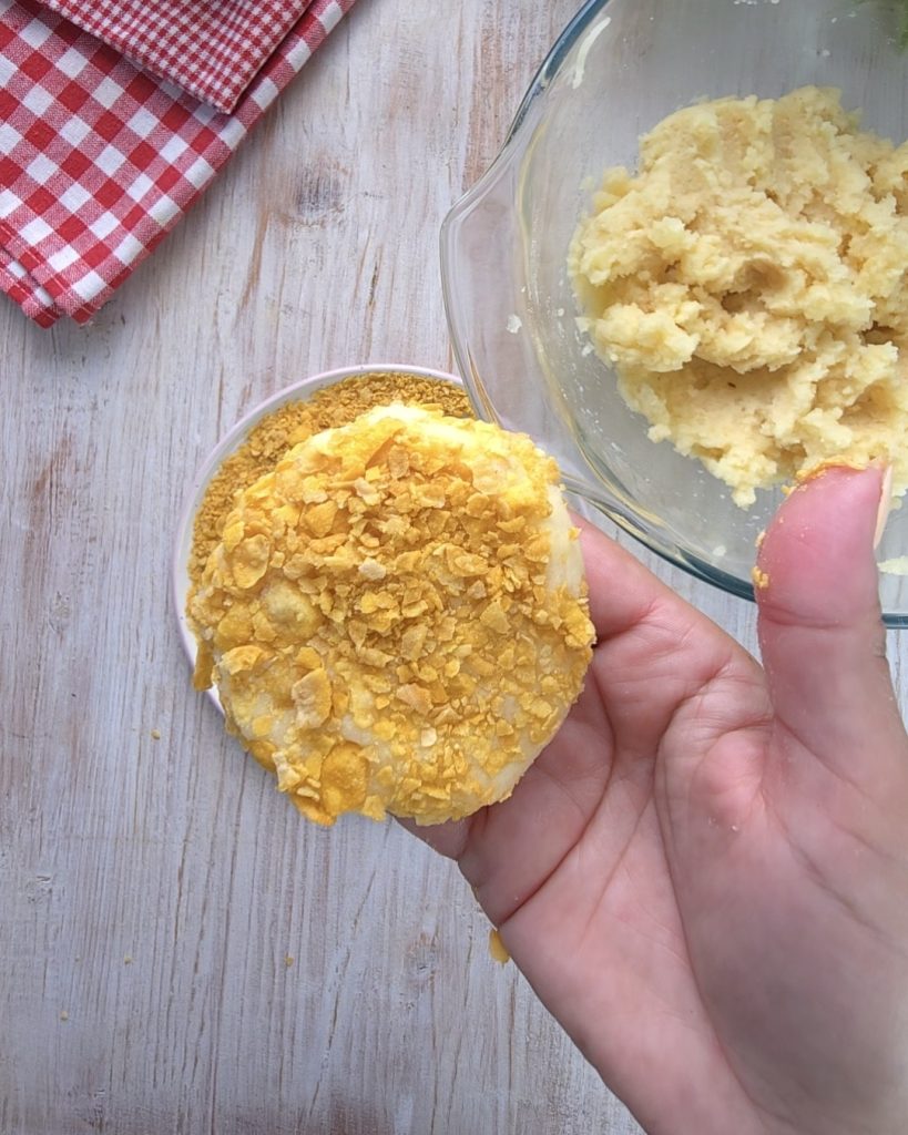 Wie man Kartoffelbällchen mit Cornflakes macht