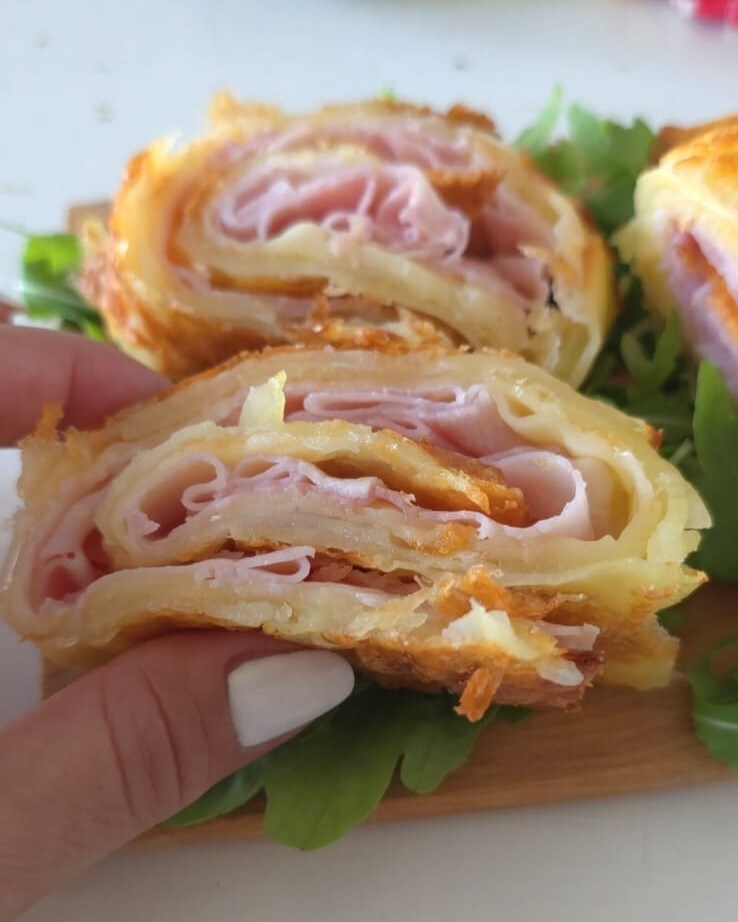 Sie können die Kartoffelrolle auch in einer „kalten Version“ mit Philadelphia, gekochtem Schinken und Rucola füllen. Oder mit gegrillten Zucchini.