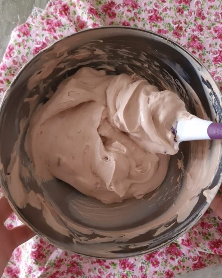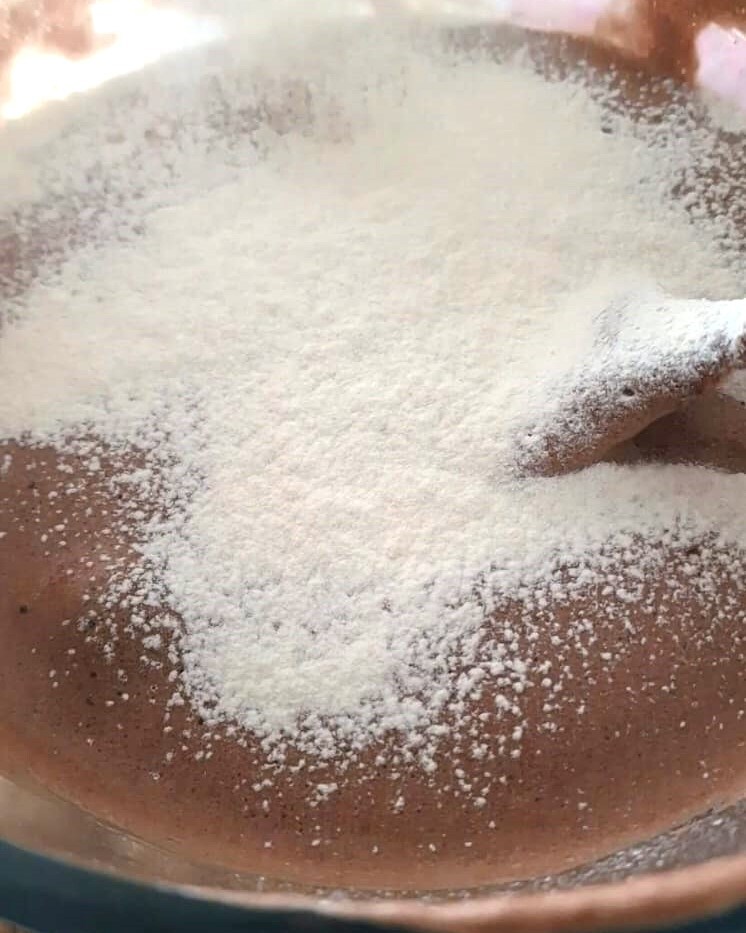 • Fügt das gesiebte Mehl und Kakao hinzu und rührt weiter.