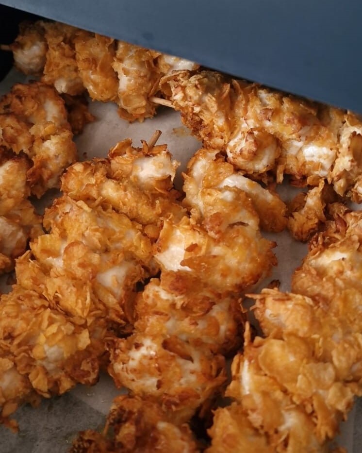 Die knusprigen Hähnchenspieße sind köstlich! Die Hähnchenbrust bleibt innen weich und schmackhaft, aber außen knusprig dank der leckeren Panade aus Cornflakes. Ich habe auch Hähnchenspieße im Ofen und Schweinelende-Spieße mit Kartoffeln gemacht. Das heutige Rezept ist leicht, gesund und super schnell zuzubereiten, gehen Sie bald das Rezept zubereiten!
