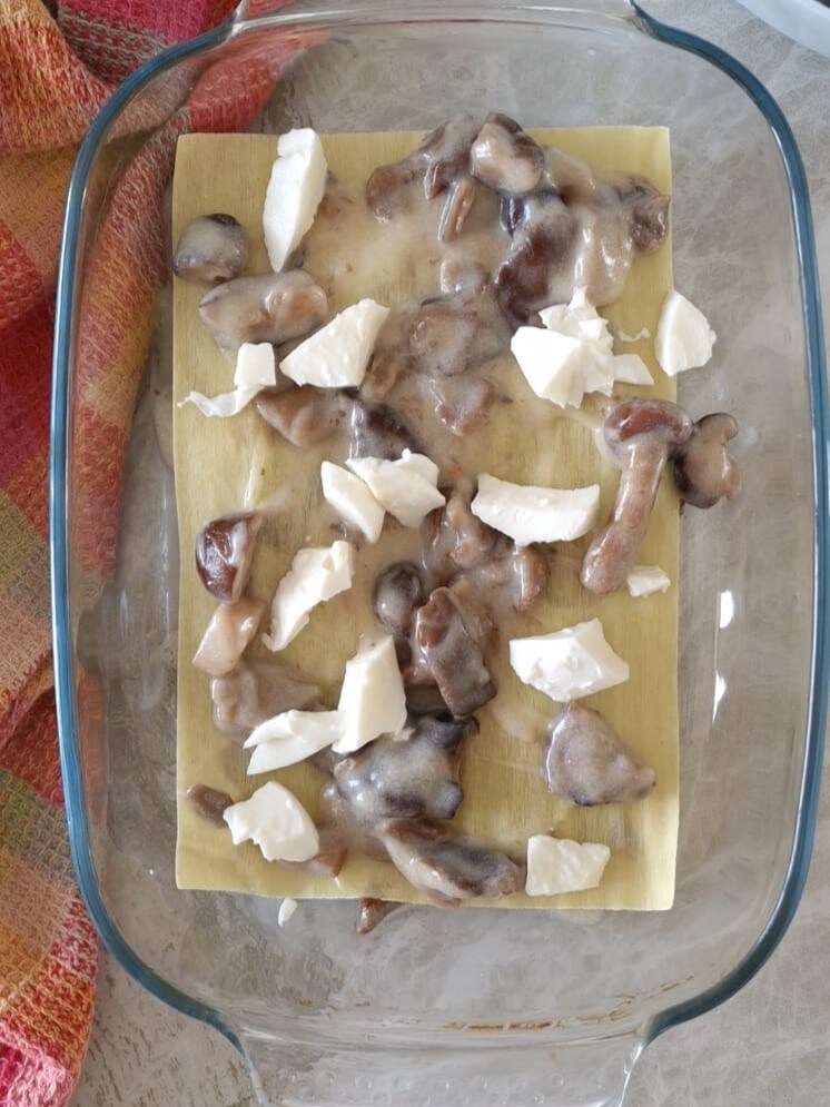 Wie man die Lasagne mit Pilzen und Béchamelsauce zubereitet