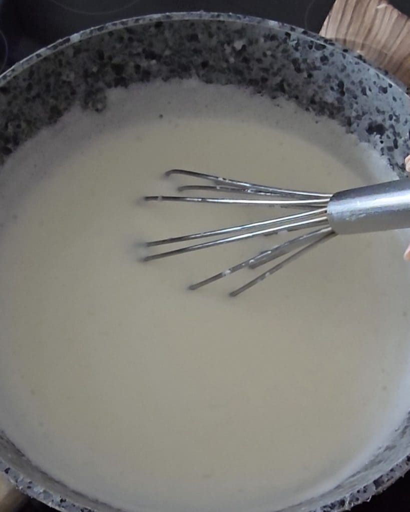 • Fügen Sie anschließend die Maisstärke hinzu und dann die warme Milch, übertragen Sie alles auf den Herd.