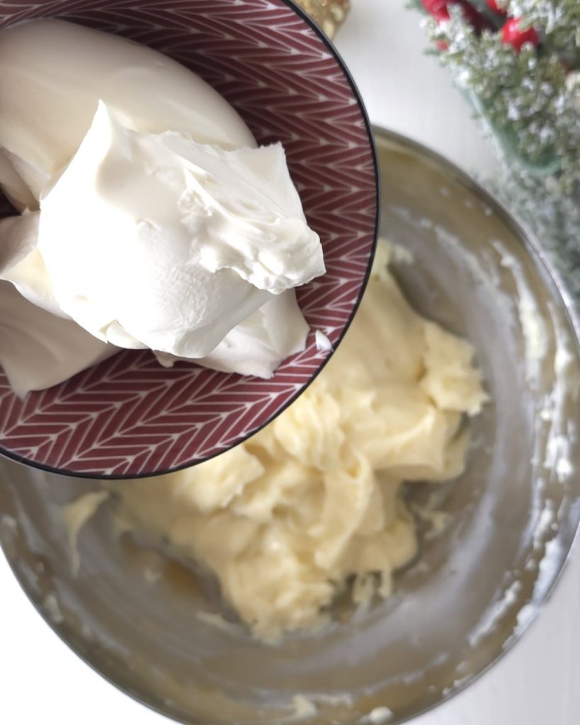 • Gut mit einem Handmixer mischen, Ihre Mascarponecreme ohne rohe Eier.