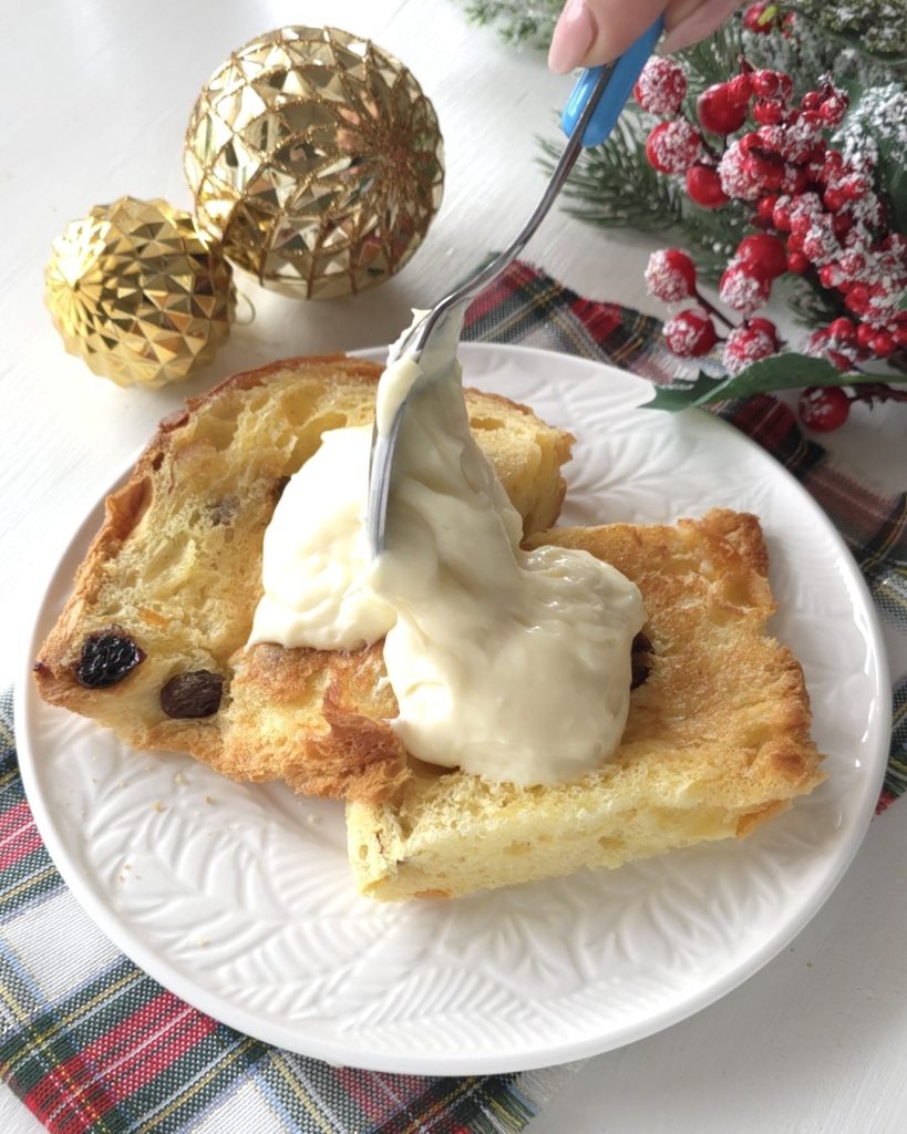 • Röste zwei Scheiben Panettone mit geschmolzener Butter
