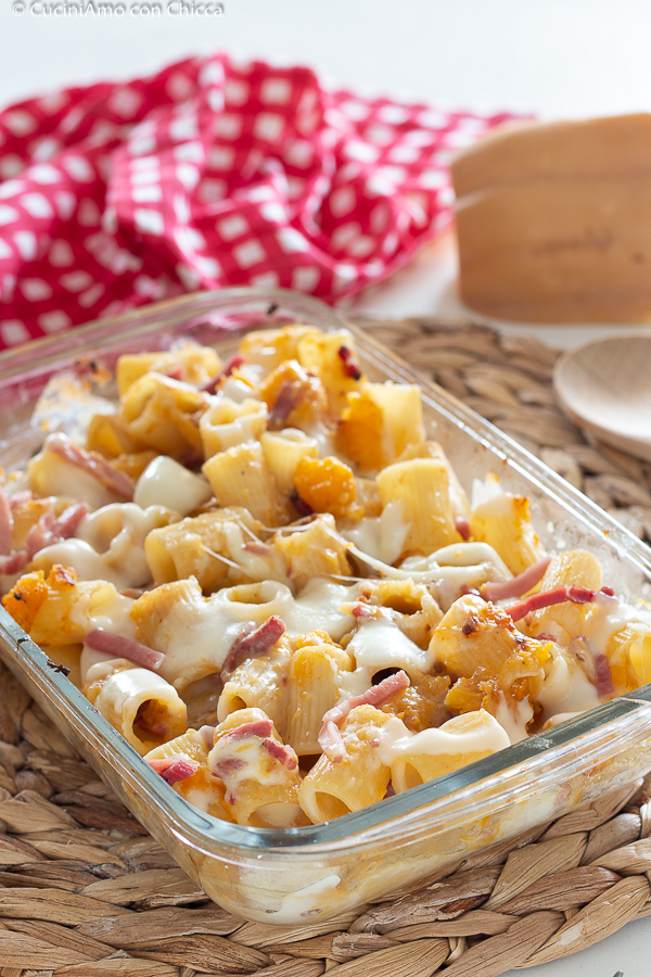 Der Nudelauflauf mit Kürbis und Speck ist ein wirklich tolles, herbstliches, warmes und wohliges Gericht. Wir sprechen von einem Rezept, das wirklich einfach und lecker ist und das du sonntags oder an Feiertagen zubereiten kannst. Im Ofen gegarte erste Gänge werden nie langweilig! Probier es aus – ich bin sicher, es wird dir gefallen! Hast du schon die Kürbis-Pfannkuchen probiert? Ich empfehle dir auch die süßen Kürbis-Pfannkuchen. Ich liebe den Kürbis und im Blog-Menü findest du viele Rezepte.