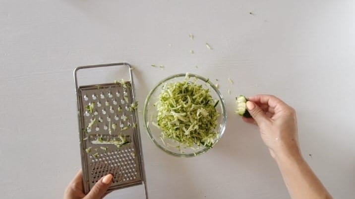 reiben Sie sie mit einer groben Reibe.