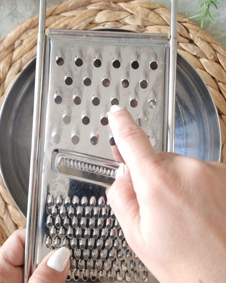 • Am Ende grob mit einer Reibe reiben.