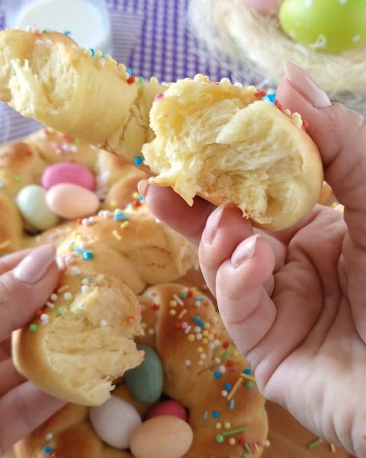 Die Osterzöpfe sind köstliche Brioches, die am Ostermorgen zum Frühstück serviert oder als Platzhalter am Tisch verwendet werden können. Ideal als Beilage zusammen mit der klassischen Ostertorte und der umbrischen Ciaramicola. Die Zöpfe sind weich und duftend, eine wahre Köstlichkeit. Das Rezept ist ganz einfach und benötigt die klassischen Zutaten: Eier, Mehl, Milch und Öl, sie sind ohne Butter. Es ist das erste süße Osterrezept, das ich dieses Jahr mache. Um ehrlich zu sein, habe ich mich mehr auf die Osterhauptgerichte und Ostervorspeisen konzentriert. Sie sind wirklich gut und schön geworden, und deshalb möchte ich dieses Rezept mit euch teilen. Ein großer Kuss, Chicca!