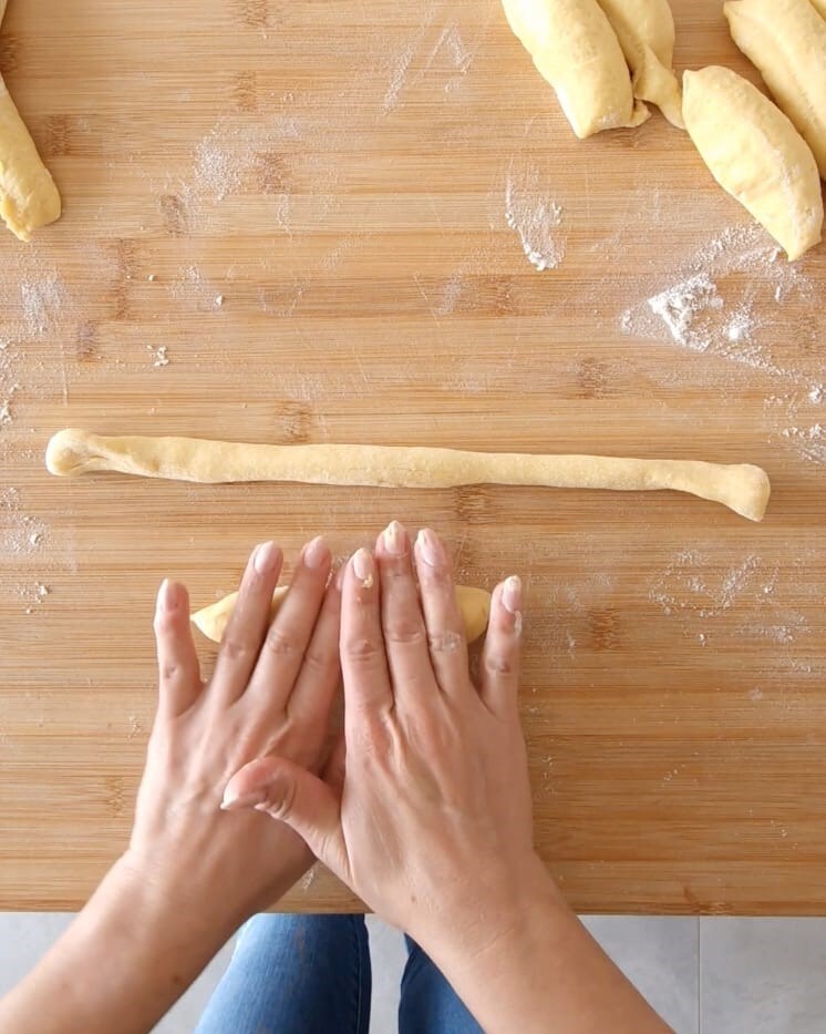 • Jedes Stück zu einem Strang von etwa 25 cm Länge rollen.