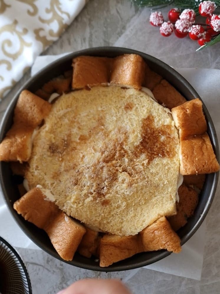 • Nehmen Sie dann den Pandoro-Boden und füllen Sie ihn mit der Mascarponecreme.