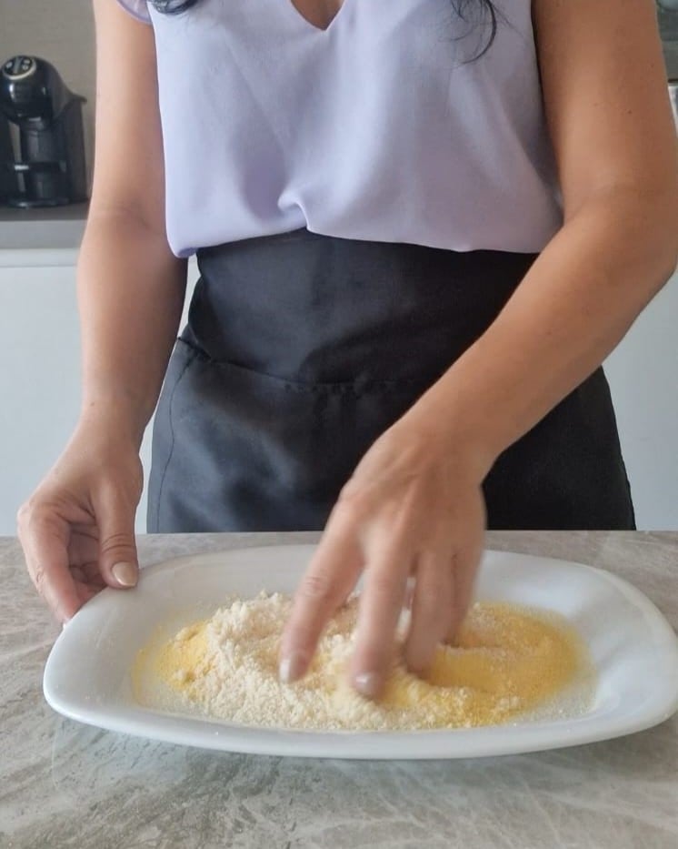 - 150 g Maismehl (Geröstet für die Panierung, alternativ Semmelbrösel)