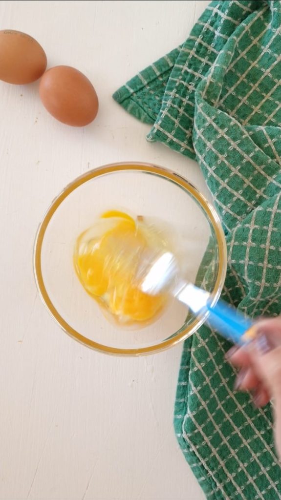 Beginne damit, die Eier in einer Schüssel mit einer Prise Salz zu verquirlen.