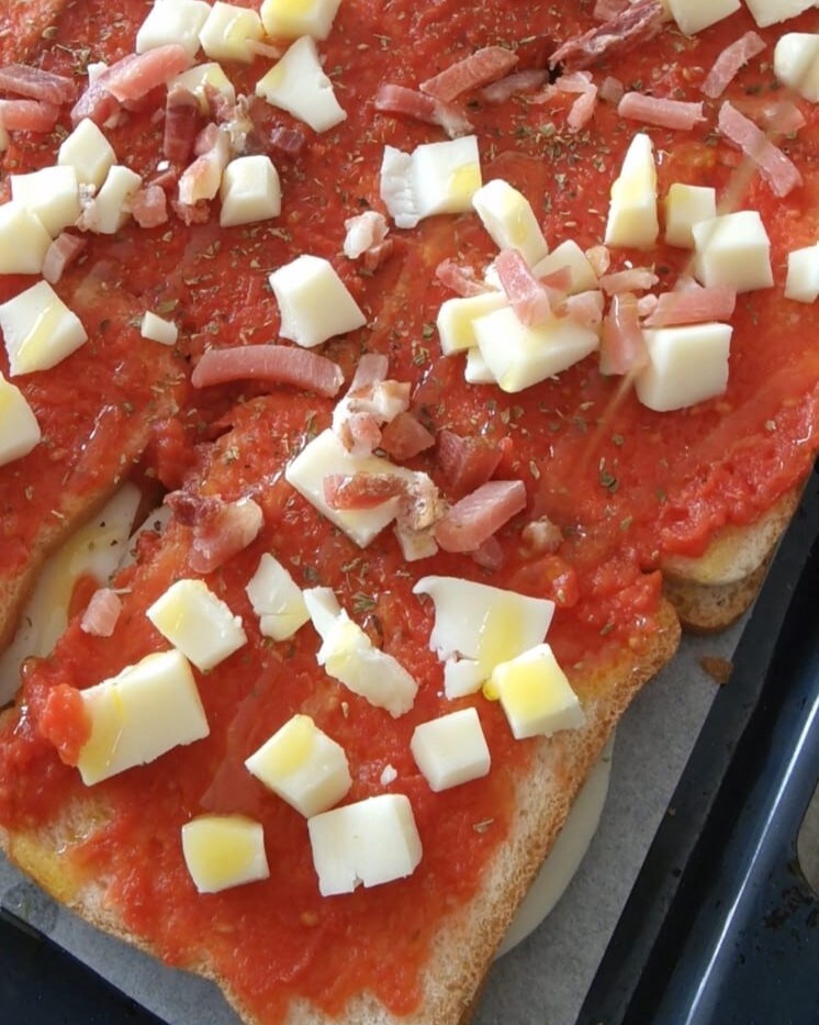 Pizzatoast ist ein schmackhaftes und leckeres Rezept für ein schnelles Abendessen. Es wird als falsche Pizza bezeichnet, da es sich um eine Version der Pizza ohne Teig handelt. Der Pizzatoast ist eine schnelle und einfache Mahlzeit, die Toastbrot verwendet. Man fügt Tomaten, Mozzarella und Parmesan hinzu, legt zwei Schichten und ab in den Ofen für nur 15 Minuten.