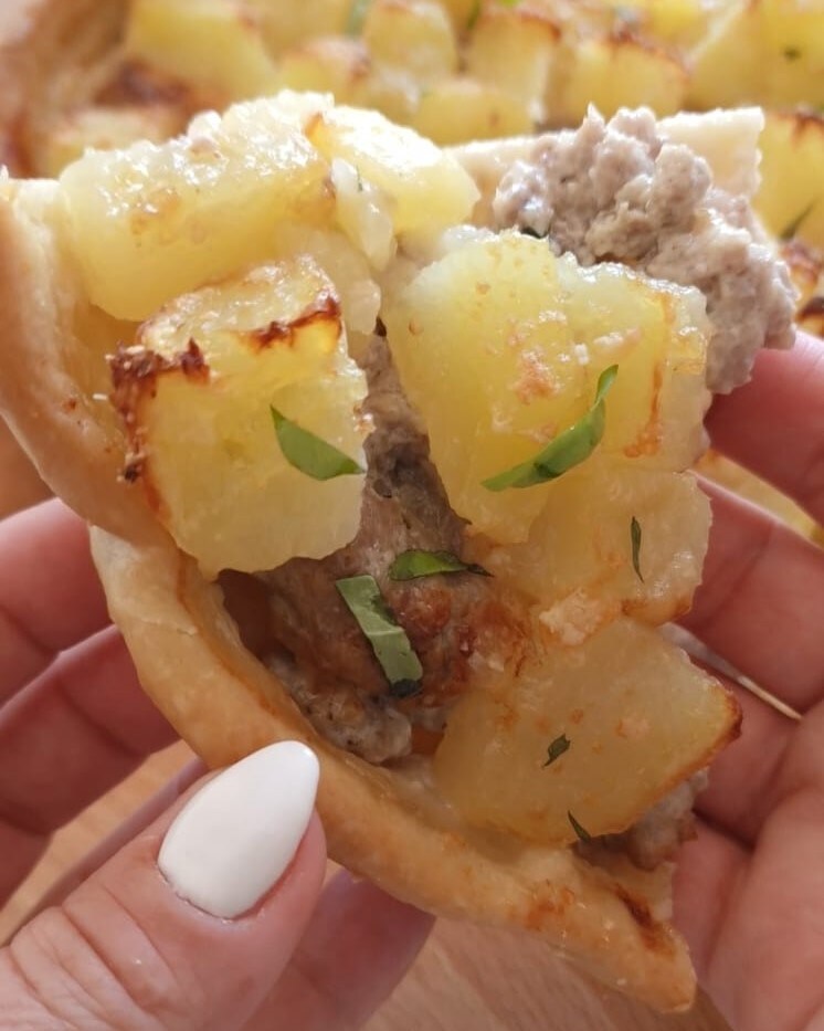 Wie man einen rustikalen Kuchen mit Wurst und Stracchino zubereitet