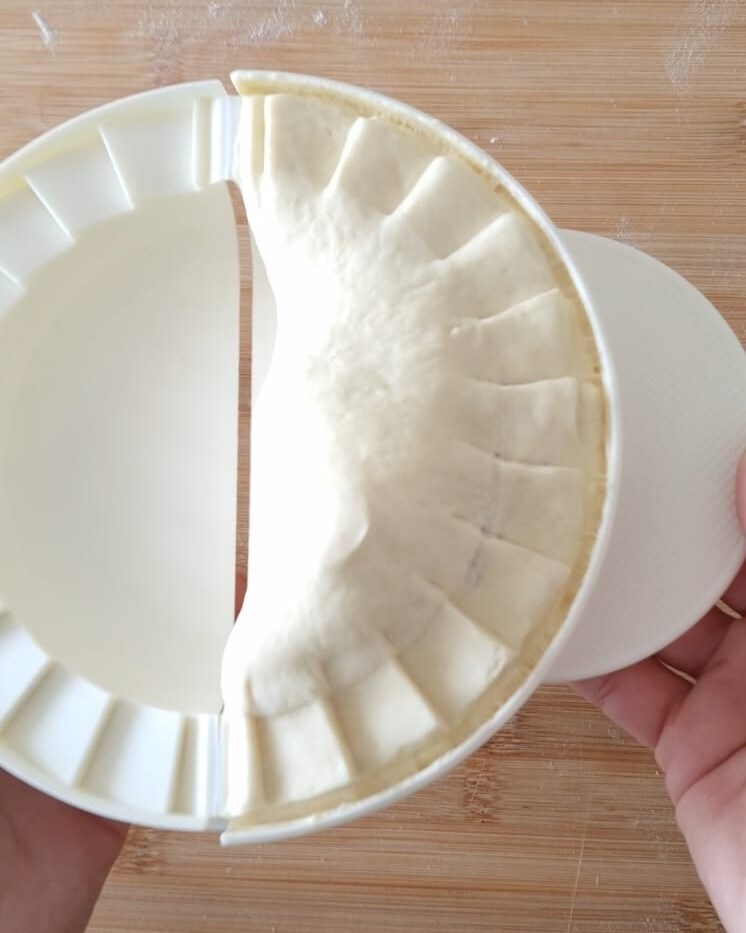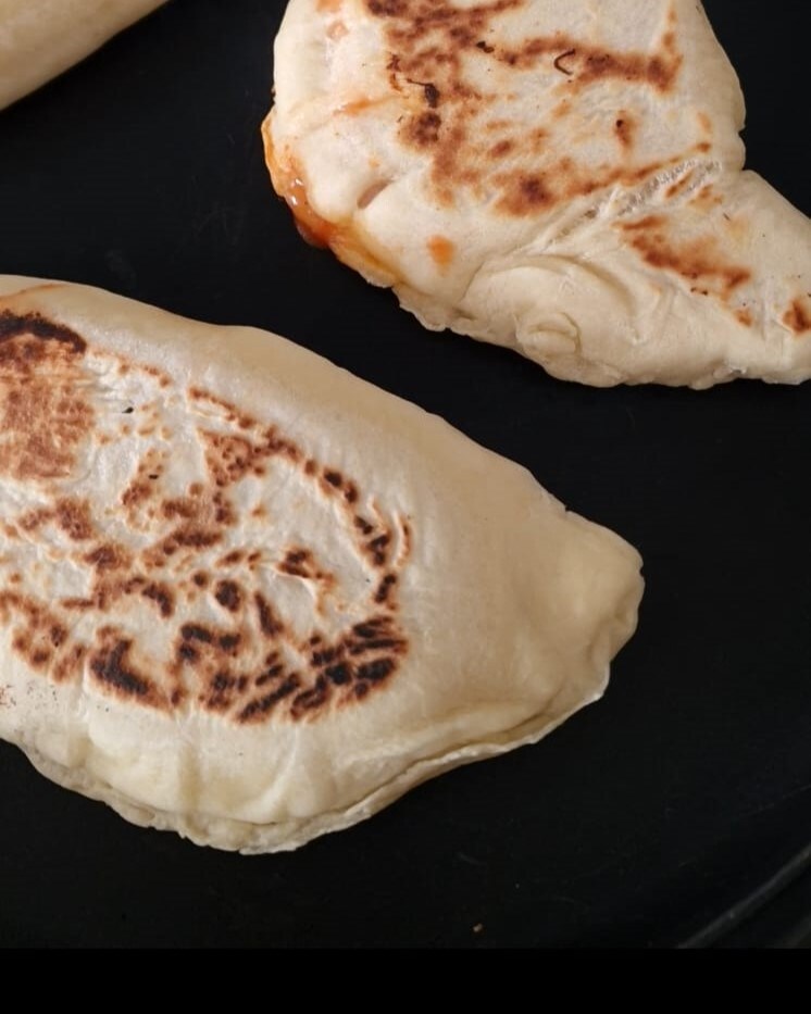 Zum Schluss die Kreise schließen und Ihre Calzoni formen, in der Pfanne kochen. Zur Hälfte der Kochzeit auch von der anderen Seite umdrehen, um die Kochzeit zu vereinheitlichen.