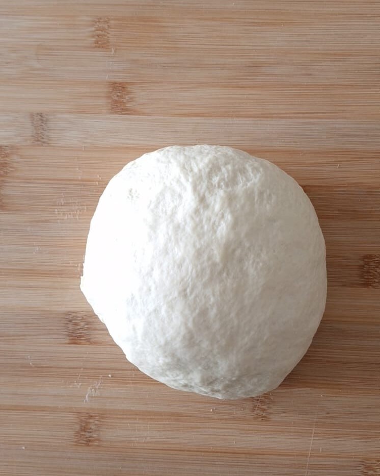 Erst mit einer Gabel mischen und dann mit den Händen, dann die Mischung auf den Tisch geben und weiter kneten, bis ein weicher und kompakter Teig entsteht.