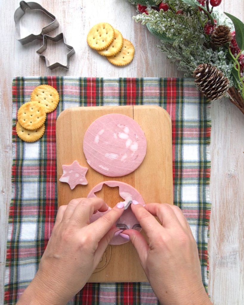 • Nehmen Sie die Mortadella-Scheibe und stechen Sie Sternformen aus, zur Seite legen.