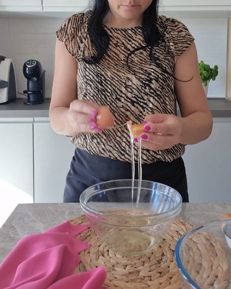 Beginnen Sie damit, die Eiweiße von den Eigelben zu trennen. Letztere schlagen Sie mit Zucker, bis sie weiß werden.