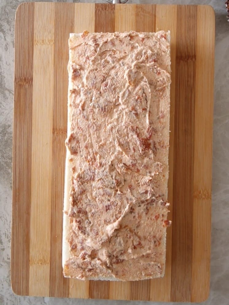 Jetzt fügen Sie auch die Füllung mit den getrockneten Tomaten hinzu.