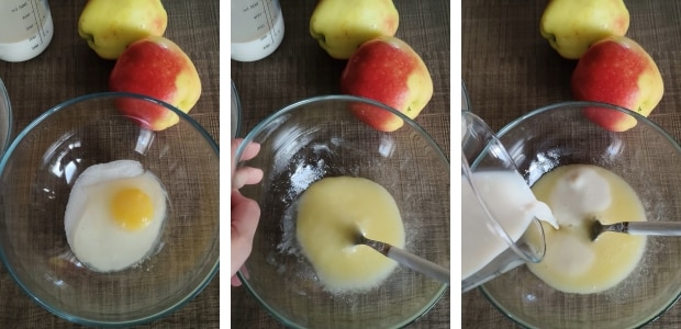 – In einer anderen Schüssel den Zucker mit dem Ei verrühren und dann die Milch hinzufügen.