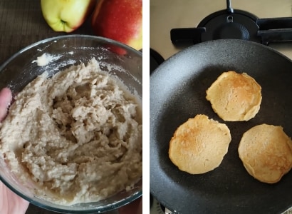 Die Apfelpfannkuchen mit Reismehl machen unser Frühstück angenehm, ohne uns zu belasten!
