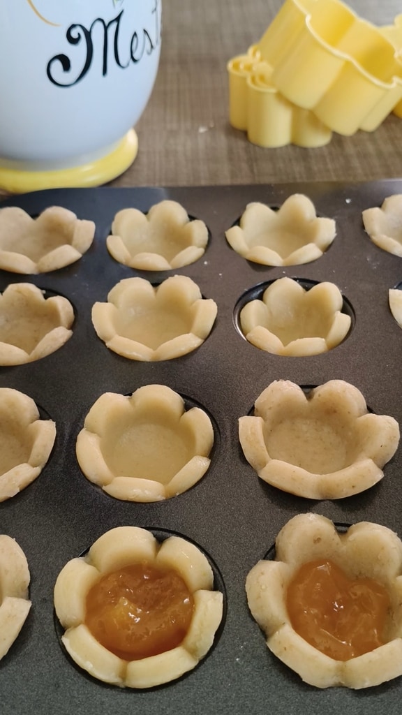Die Blüten von Mürbeteig Köstlichkeiten sind köstliche Törtchen aus zartem Mürbeteig, gefüllt mit Cremes oder Konfitüren und ideal, um die Tee- oder Kaffeepause zu begleiten.