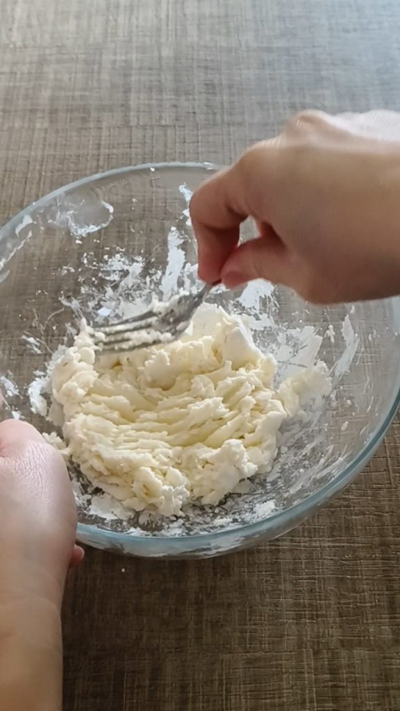 Die Butter mit einer Gabel zerdrücken und alles zu einer Creme verarbeiten.
